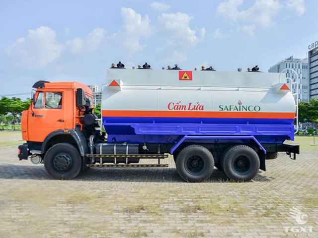 Xe bồn chở xăng dầu Kamaz 18 khối đóng thùng trên nền cơ sở xe tải Kamaz 53229 nhập khẩu nguyên chiếc được trang bị động cơ có dung tich 10.850cc cho công suất mạnh mẽ, vận hành tốt trên mọi địa hình. Bồn chở nhiên liệu với dung tích 18.000 lít được đóng bằng thép ngoại nhập chất lượng cao, công nghệ sơn tĩnh điện chống ăn mòn điện hóa, tăng tính an toàn, tăng tuổi thọ bồn, đồng thời không làm giảm chất lượng cho nhiên liệu bên trong.