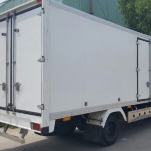 Xe có kết cấu thùng chặt chẽ, biên sàn sắt chấn dập, sàn thùng composit chống trượt, vách ngoài thùng và vách trong thùng đều là composit chống trượt. Lớp cách nhiệt styrofoam. Cửa sau 2 cửa inox 30×4. Lớp pholystyrene xốp dày 70-80mm giúp ngăn chặn tuyệt đối sự truyền nhiệt từ bên ngoài. Cửa hông thùng được thiết kế âm, các chi tiết bản lề và tay khoá được làm bằng inox 304
