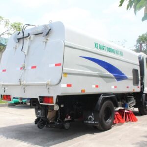 – Vận hành: Vận hành bằng thủy lực. Khi xe di chuyển bình thường trên đường, 2 chổi sẽ thu lại hai bên. Khi vận hành quét hút, một chổi sẽ mở sang bên cạnh và hoạt động cùng chổi chính. Trên các chổi đều có hệ thống thủy lực đảm bảo an toàn khi chổi gặp chướng ngại vật trên đường quét.