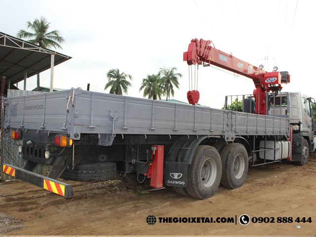Xe tải Daewoo 3 chân 6×4 gắn cẩu 7 tấn 6 khúc CSS106 được sản xuất với 100% linh kiện Hàn Quốc, chất lượng luôn được đảm bảo, giá trị trường tồn theo thời gian. Xe do nhà máy Daewoo Hàn Quốc sản xuất theo tiêu chuẩn Châu Âu và đạt yêu cầu khí thải Euro 4. Bảng giá xe tải gắn cẩu được cập nhật liên tục để khách hàng dễ theo dõi.