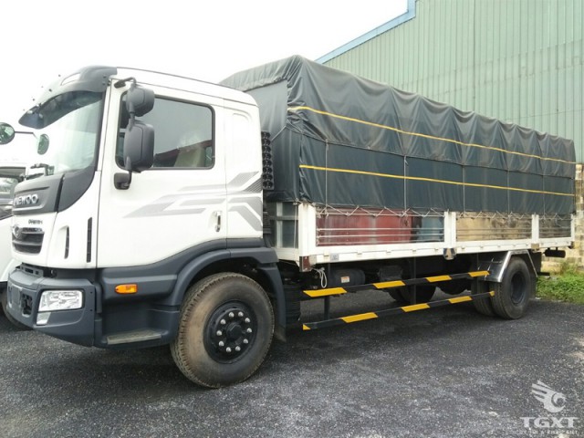 Xe tải Daewoo đóng thùng mui bạt với tải trọng tối đa lên đến 8T8 với kích thước lòng thùng 7600 x 2360 x 720 mm. Thùng lớn được đóng bền đẹp, đảm bảo chịu tải tốt.