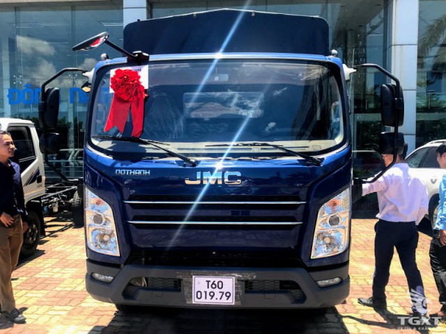 Phần đầu xe được đặt logo JMC to bản ngay trung tâm mạ crom sáng bóng nhìn rất sang trọng và tinh tế kết hợp với logo DOTHANH tạo điểm nhấn cho đầu cabin, thể hiện sự hợp tác của hai nhà máy.