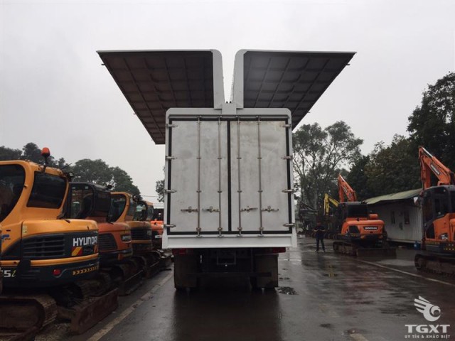 Đây có thể xem là sự đột phá trong thiết kế với phiên bản thùng cánh dơi vô cùng độc đáo và mới lạ, là sự kết hợp giữa thùng kín và thùng bạt. Phần bửng 2 bên được mở hoàn toàn tiện lợi khi vận chuyển hàng hóa có tải trọng nặng hay kích thước cồng kềnh. Thiết kế linh hoạt có thể mở/ đóng 1 lần hết 2 bên sườn thùng bằng xi lanh thủy lực với 2 chế độ điều khiển khác nhau giúp dễ dàng xếp dỡ hàng hóa lên xe.