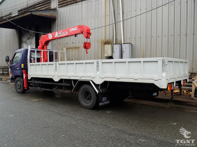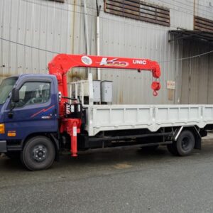Xe Hyundai HD99 gắn cẩu Unic URV343 được nhập mới 100% chất lượng cao, có khối lượng nâng lớn nhất 3030kg tại 2m7 và 608kg tại 7m51. Thiết kế cẩu 3 đoạn có chiều cao tối đa 9,2m, bán kính làm việc từ 0,65m đến 7,51m. Vận hành bằng thủy lực. Hệ thống điều khiển cẩu hiện đại, dễ dàng sử dụng.
