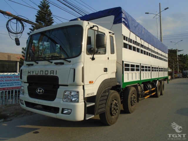 Xe tải Hyundai HD320 4 chân chở gia súc 15 tấn được nhập khẩu nguyên chiếc từ nhà máy Hàn Quốc với chất lượng cao và bền bỉ. HD320 hiện nay là dòng xe đi đầu trong phân khúc xe tải nặng trang bị đầy đủ mọi tiện nghi từ động cơ mạnh mẽ tiết kiệm nhiên liệu đến nội và ngoại thất xe. Tất cả các bộ phận trên xe được cấu tạo chắc chắn và hài hòa với nhau.