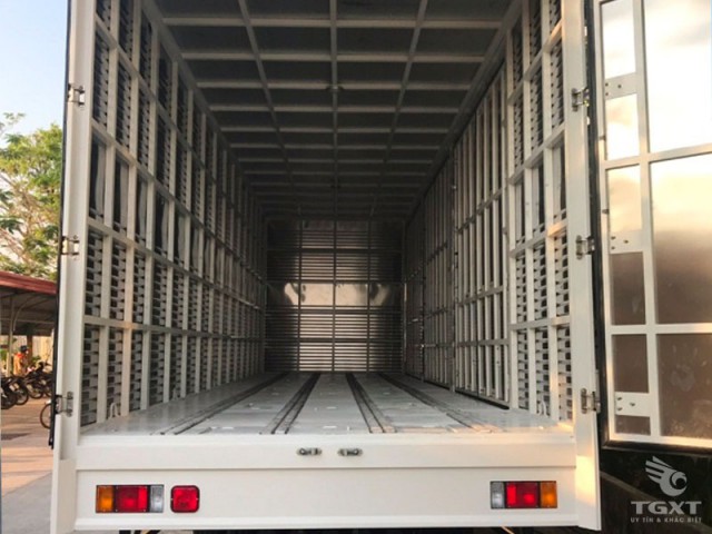 Thùng hàng đặc biệt với cơ cấu thủy lực dẫn động đồng bộ nâng hạ sàn nâng phía sau. Cơ cấu ray trượt nằm trong lòng thùng xe. Có hệ thống móc neo giữ Pallet. Thành thùng được thiết kế chắc chắn có khả năng chịu được va đập